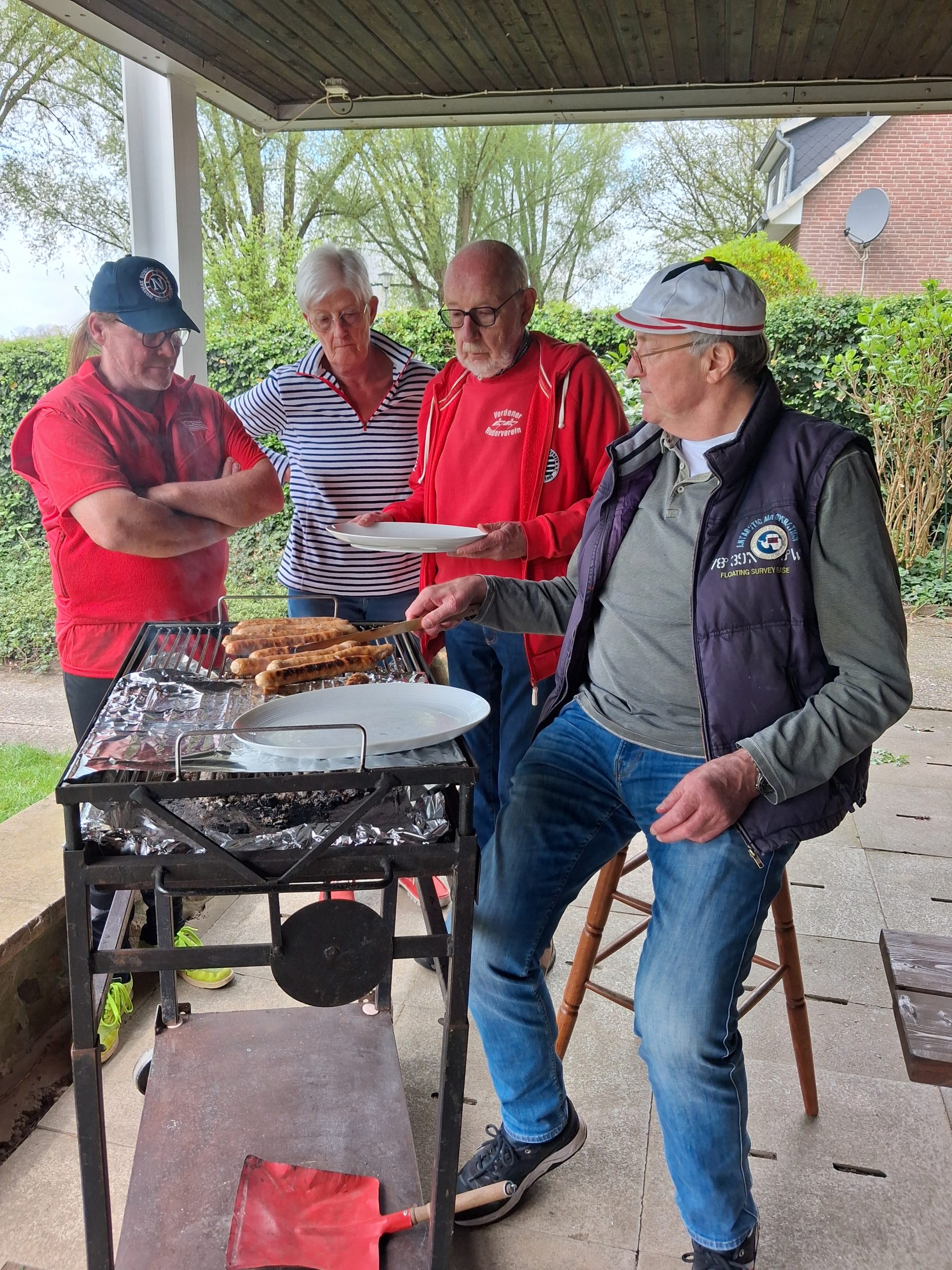 Nach unserer Rückkehr zum Bootshaus wurden wir vom Duft des Grills in den professionellen Händen von Fritz Stern begrüßt. Leckeren selbstgemachten Salate und Baguettes haben die Bratwürste wunderbar ergänzt. Weitere Vereinsmitgliedern sind mit dem Rad, Auto oder zu Fuß dazugekommen um den Start in der neuen Saison perfekt zu machen.