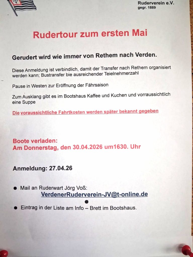 Rudern Einsteigerkurs 2026 über die KVHS Verden mit dem Verdener Ruderverein e.V.