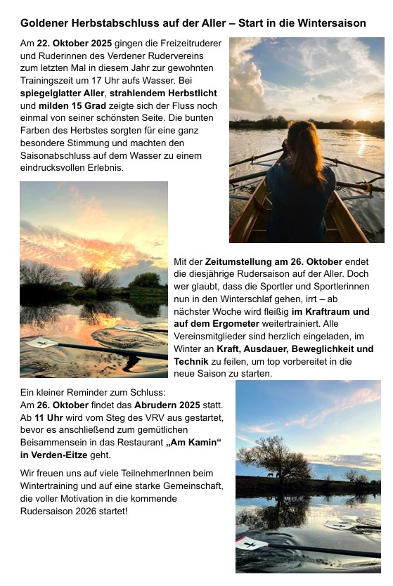 Abrudern 2025 vom Steg die Aller aufwärts, 26. Oktober 2025 ab 11 Uhr