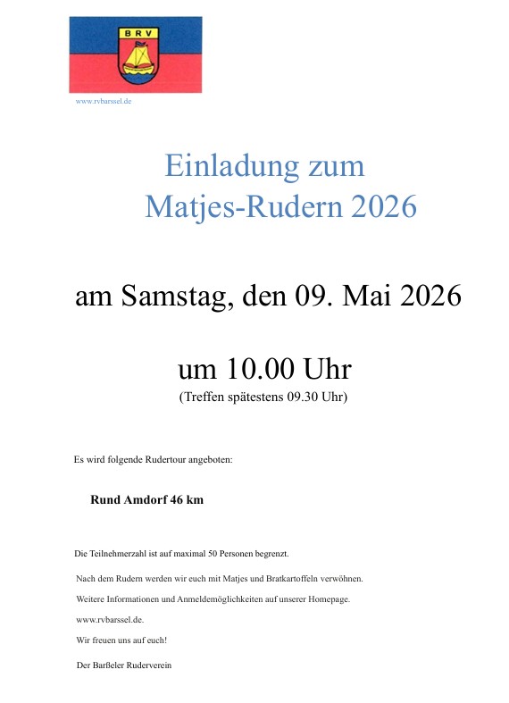 • SAVE THE DATE – Anmeldungen laufen: Matjesrudern am 09. Mai 2026
